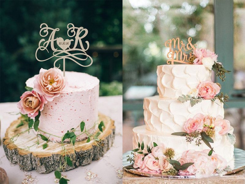 Bánh cưới đẹp. Bánh kem cưới gắn hoa về cơ bản khá giống bánh cưới truyền thống chỉ thay hoa kem bằng các loại hoa tươi để tạo điểm nhấn. Bánh kem cưới gắn hoa mang đến sự nữ tính, mềm mại phù hợp với những đám cưới mang phong cách cổ điển, truyền thống.