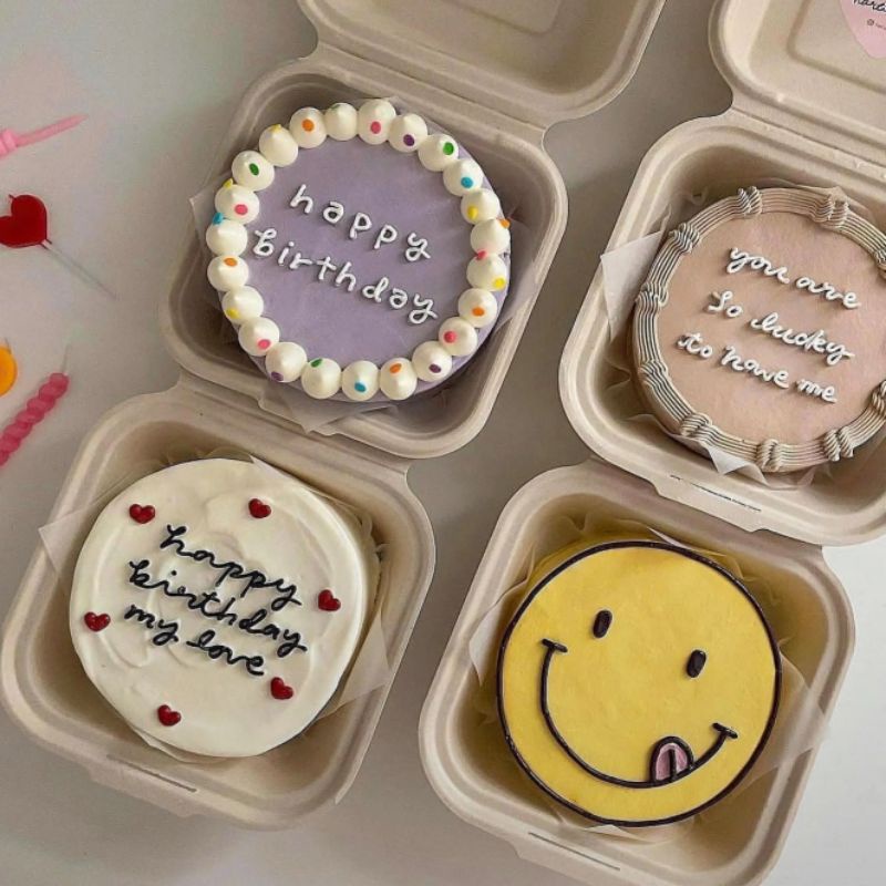 Bánh kem bento.Bento cake là một loại bánh đang trở thành xu hướng được nhiều người lựa chọn. Thu hút ánh nhìn bởi thiết kế đậm chất Hàn Quốc với tone màu dễ thương, bánh kem bento phù hợp cho nhiều dịp khác nhau. Bánh có kích thước nhỏ xinh, phù hợp cho 1-2 người nên dừng lại ở mức vừa đủ, vì vậy không chỉ bán cho dịp sinh nhật mà còn có sẵn bánh để chiều lòng những bạn khách bỗng dưng thèm ăn.