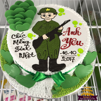 bánh kem hình bộ đội. Hình ảnh bộ đội, công an, cảnh sát vẫn luôn là hình ảnh đẹp. Những con người có công rất lớn với Tổ quốc, vì dân quên mình, sẵn sàng hi sinh lợi ích bản thân, bảo vệ bình yên cho nhân dân, đất nước. Chính vì vậy, nếu bạn đang có một người chồng bộ đội, một người yêu công an, hay một cậu bạn thân cảnh sát,… thì nhân dịp sinh nhật đặc biệt sắp tới, hãy dành cho họ những món quà tinh thần – một chiếc bánh gato tôn vinh nghề nghiệp của chính họ thật độc đáo, bất ngờ nhé.