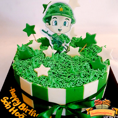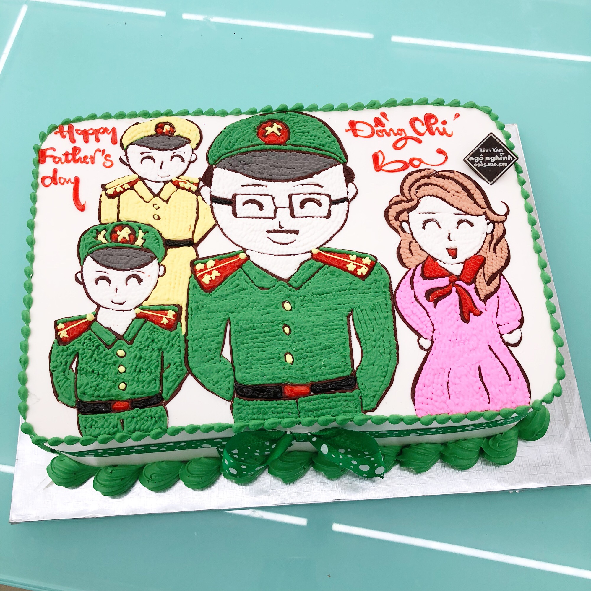 Bánh kem hình chú bộ đội. “Chú bộ đội” ba tiếng quen thuộc thân thương mỗi khi nhắc đến hình ảnh người lính kiên trung ngày đêm gánh trên vai trách nhiệm bảo vệ Tổ quốc. Đối với những ai có cha, có chồng là một người lính, đó chính là sự hạnh phúc và niềm tự hào to lớn nhất về người đàn ông quan trọng nhất của mình.