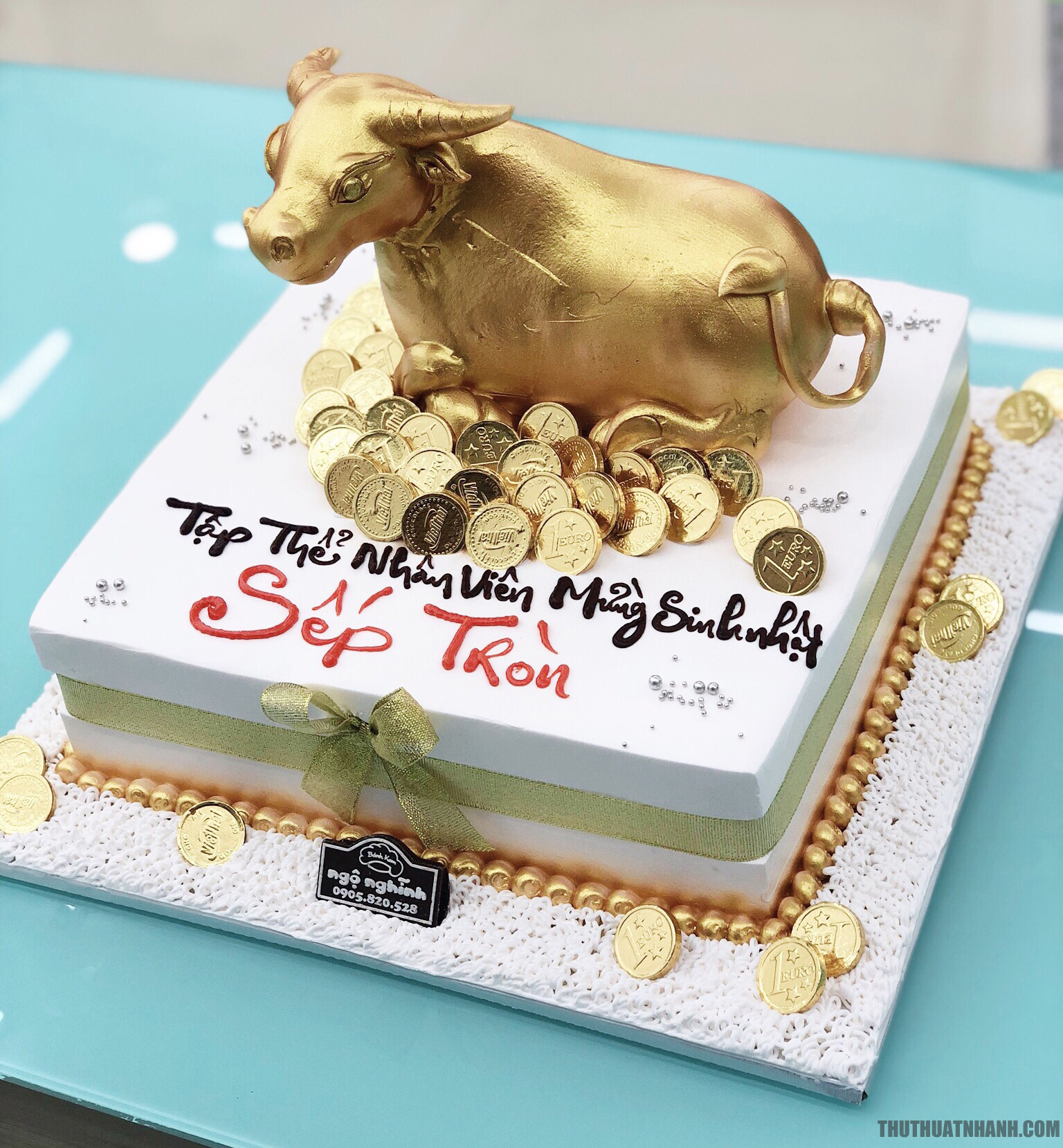 Bánh sinh nhật con trâu cho người tuổi Sửu, mẫu bánh kem được tạo hình con Trâu vàng, 3D đẹp dễ thương cho bé trai, bé gái, người lớn.
