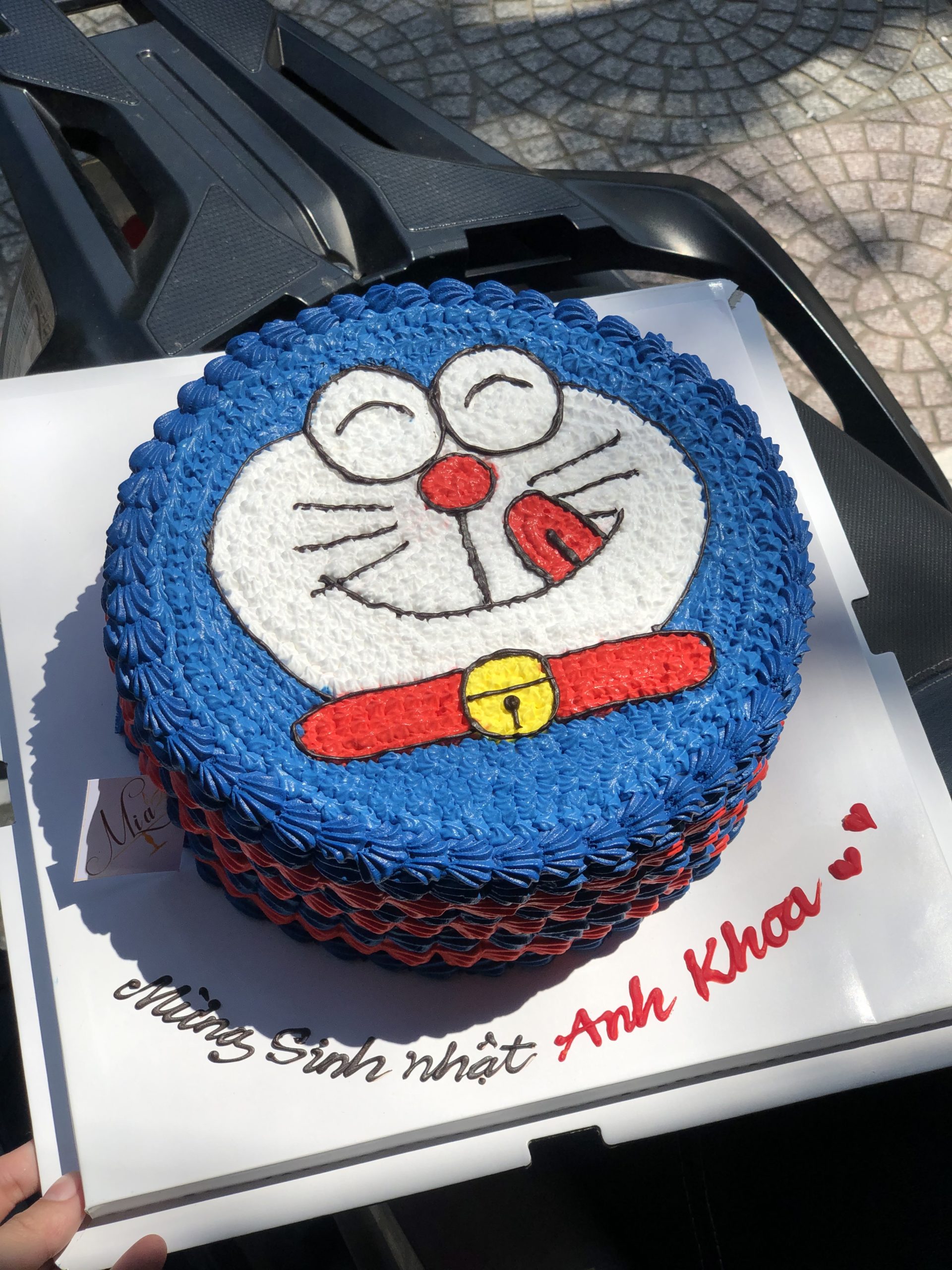 Bánh kem hình đô rê môn. Những chiếc bánh sinh nhật hình Doremon 1 tầng cũng khá đa dạng. Bạn có thể thoải mái lựa chọn những mẫu bánh vẽ hình Doremon, bánh trang trí Doremon hay những chiếc bánh tạo hình Doremon đáng yêu. Với 2 gam màu chủ đạo là trắng và xanh cùng bộ ria đen, chiếc mũi và miệng màu đỏ, đặc biệt là chiếc chuông vàng quen thuộc chắc chắn sẽ làm bé yêu thích mê.