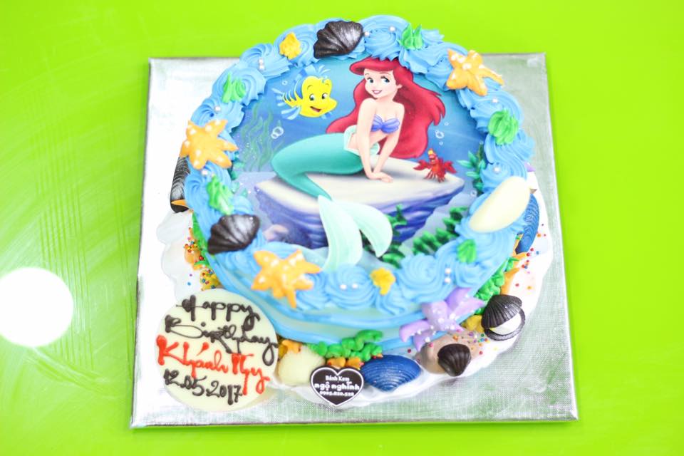 Bánh kem hình nàng tiên cá.Nàng tiên cá là một nhân vật hư cấu của biển cả sống ở đại dương, những nàng tiên cá với gương mặt xinh đẹp của con người nhưng không có chân và bơi bằng đuôi cá. Với sự khéo léo của những người thợ làm bánh tạo hình thành những nàng công chúa vô cùng xinh đẹp và dễ thương.