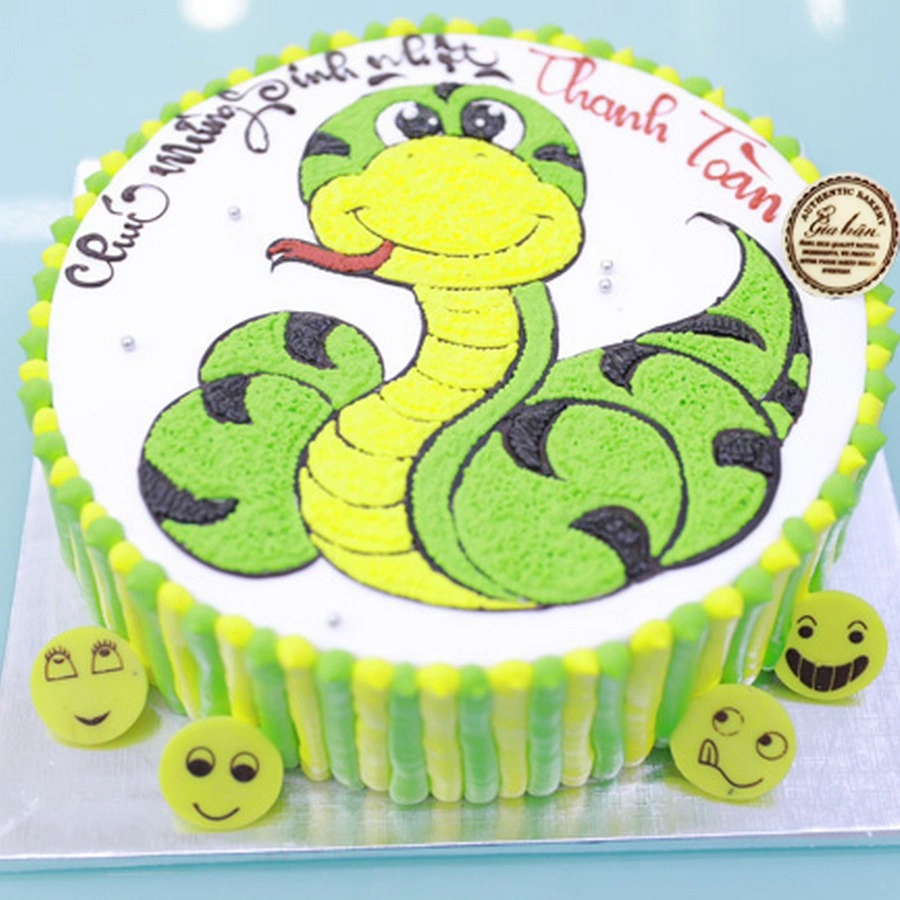 Bánh kem hình rắn.Rất nhiều khách hàng đã hỏi “” tại sao không giảm giá sản phẩm để cạnh tranh, bởi vì “khi mua online người ta chỉ quan tâm về giá”. Xin trả lời rằng chúng tôi luôn cho rằng, mỗi chiếc bánh sinh nhật dù đặt mua online hay offline, đều chứa đựng rất nhiều tình cảm của người đặt bánh đến với người nhận. Bởi vậy, mỗi chiếc bánh chung tôi đều làm cẩn thận, tỉ mỉ, đảm bảo chất lượng về mẫu mã cũng như hương vị gửi đến khách hàng.Không giống như một số tiệm bánh sinh nhật khác có thể bớt xén nguyên vật liệu hoặc nhập hàng từ những nguồn không rõ ràng để giảm chi phí, .
