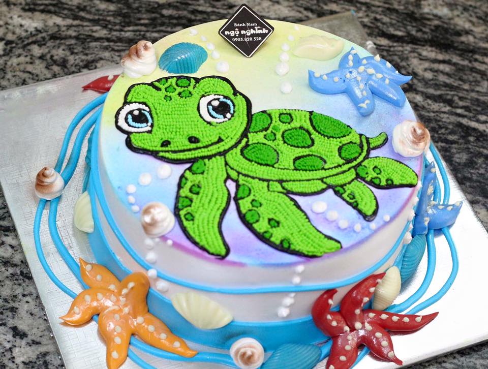 Bánh kem hình rùa.Những sinh vật biển có rất nhiều loại khác nhau và mang một nét đặc trưng và độc đáo riêng. Những chú rùa biển màu xanh rất dễ thương và mang lại sự mát mẻ của đại dương, những chiếc bánh kem này tạo hình vô cùng ấn tượng với lớp bánh mịn màng sẽ mang lại cho bạn cảm giác thích thú.