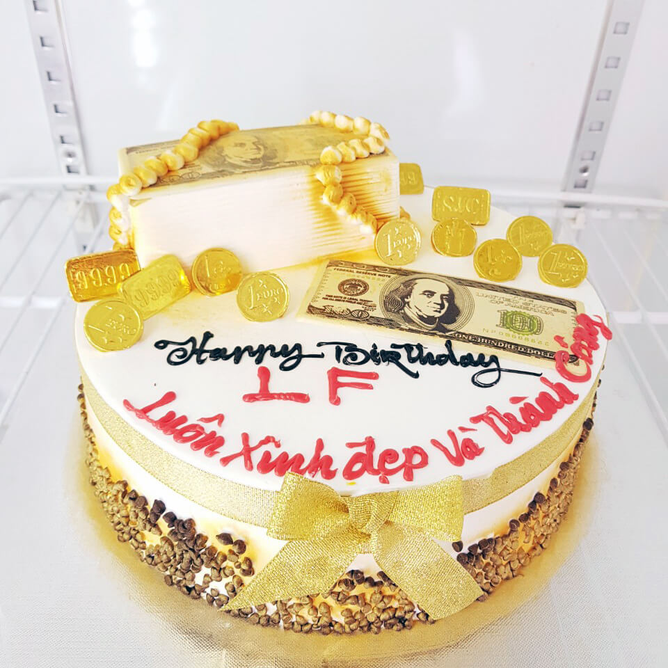 Bánh sinh nhật in hình ăn được bắt tiền đôla nền socola đẹp độc đáo. Liên hệ. Bánh kem sinh nhật trang trí thỏi vàng sang trọng đẹp độc đáo tặng nam.