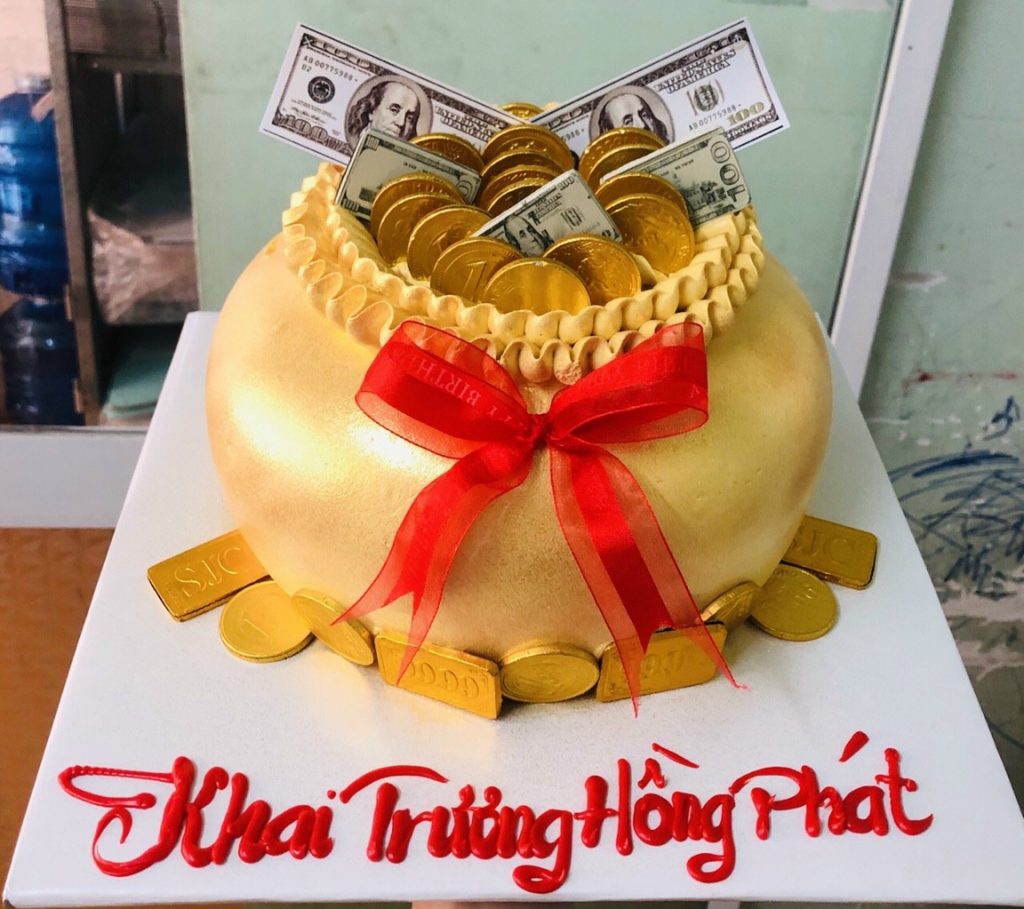 Bánh kem khai tiền vàng. Trong quan niệm của nhiều người, đầu xuôi thì đuôi lọt, lúc mới kinh doanh mà may mắn thì sau này cũng sẽ thuận …