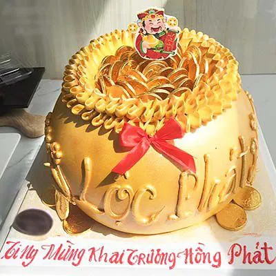 Bánh kem khai trương tất niên hũ vàng thần tài đồng tiền