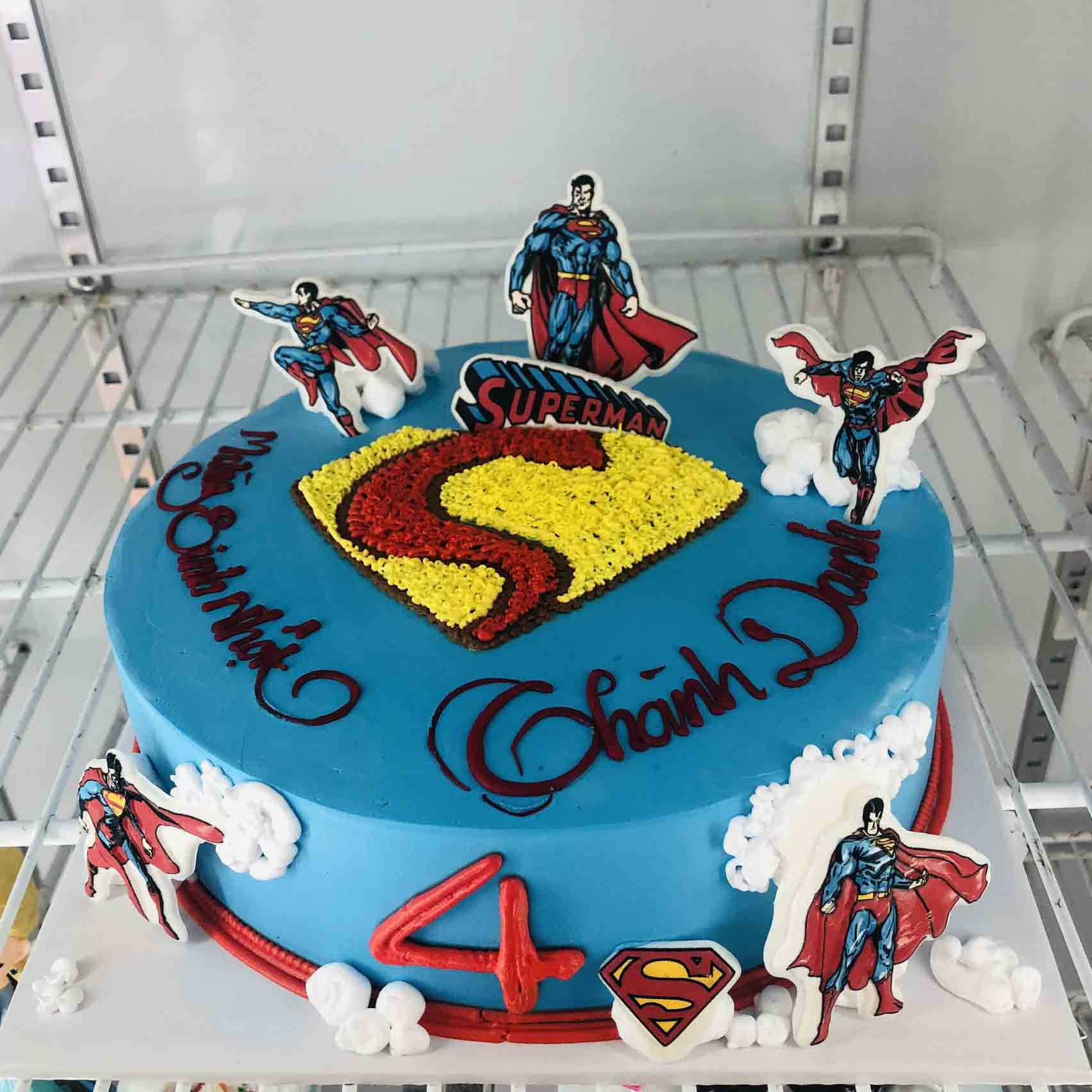 Hình trang trí Superman được kết hợp bởi 2 tone xanh và đỏ, đúng như màu quần áo đặc trưng của nhân vật này. Bánh kem sinh nhật bé trai hình …