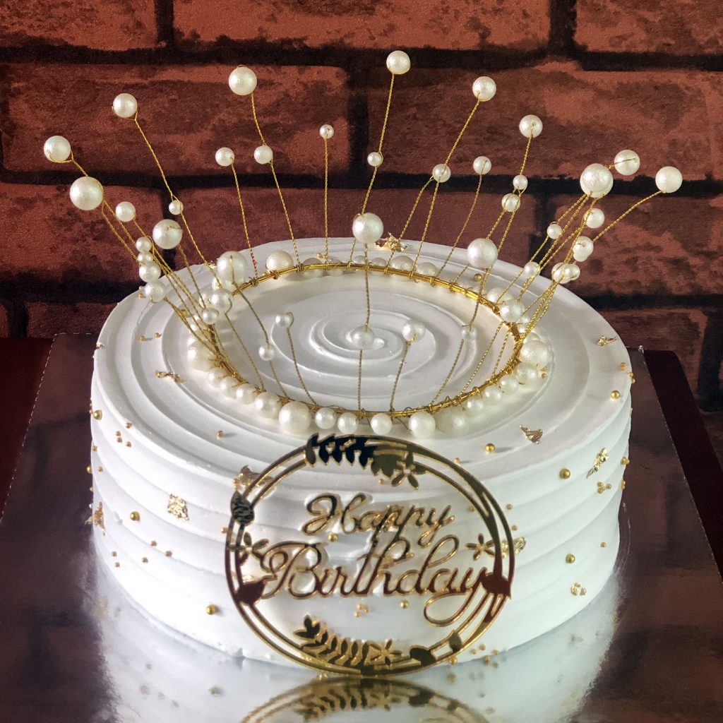 _ Bánh cốt vani, kem tươi, trang trí vương miện ngọc. _ Kích thước: đường kính 16cm, cao 10cm. Các size bánh cơ bản tại
