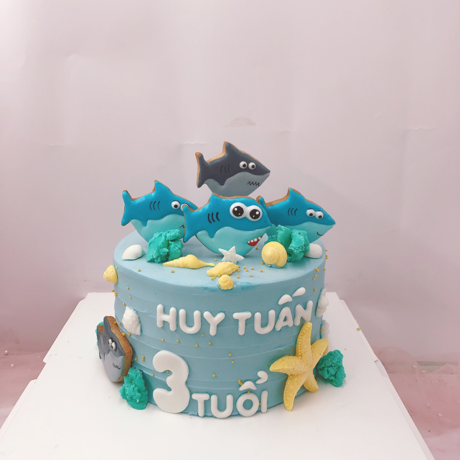 Bánh sinh nhật hình cá mập. Nếu các bậc phụ huynh thường xuyên theo dõi tivi hoặc các kênh youtube cho thiếu nhi, chắc chắn vẫn còn nhớ đến những chú cá mập tinh nghịch trong ca khúc “Baby Shark”. Cả gia đình cá mập vui nhộn không chỉ mang đến cho các bé điệu nhảy đơn giản hài hước.