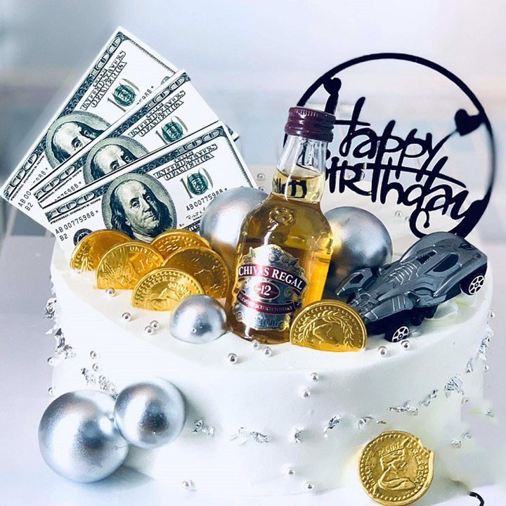 Bánh sinh nhật phủ socola trang trí chai có rút tiền đẹp độc đáo …