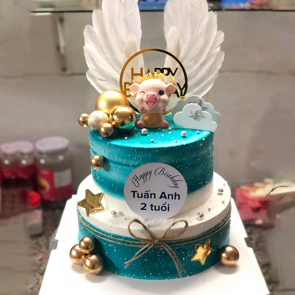 Bánh sinh nhật hình con cho bé trai tuổi hợi – Bánh kem hiện đại trang trí phụ kiện cao cấp.