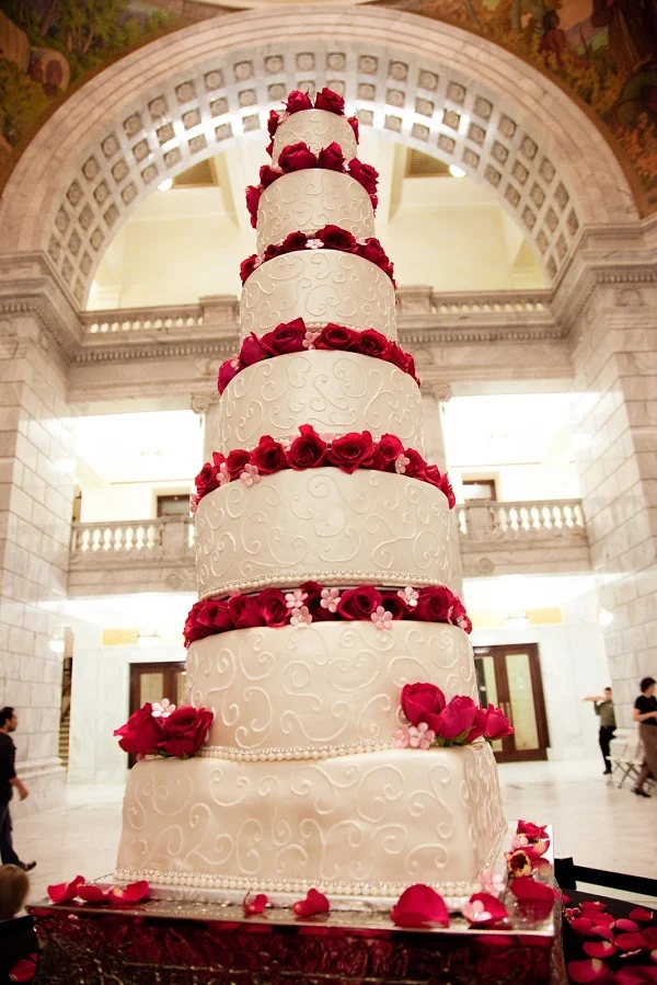 Bánh sinh nhật cao với 10 tầng khá đẹp Bánh sinh nhật to cần phải dùng mấy nâng để trang trí.