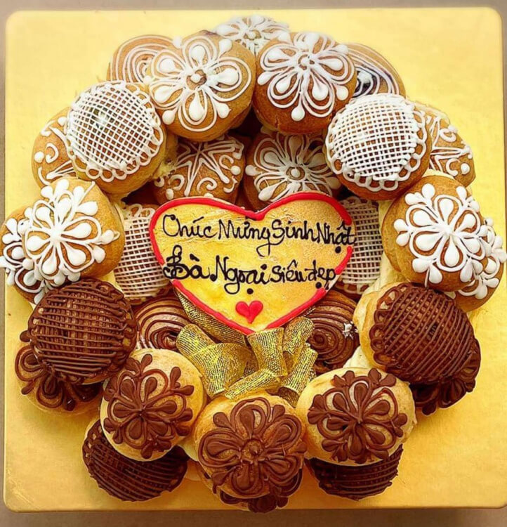 Bánh sinh nhật su kem. Với lớp vỏ mềm dai cùng nhân kem béo ngậy, chẳng biết từ khi nào bánh su kem đã trở thành món ăn quen thuộc với những ai mê đồ ngọt. Trong những năm gần đây, bánh su kem có những biến tấu khác nhau, thu hút bao người, nhất là giới trẻ. .Vỏ bánh mỏng vừa phải, bao bọc kem su bên trong, bên trên có thêm topping là các loại mứt, như mứt dâu, cam, dứa, bơ, đậu phộng.
