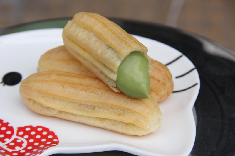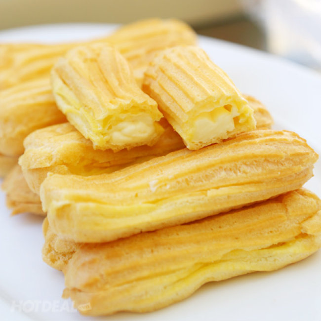Bánh su kem dài. Cho nước và dầu ăn vào nồi, bắc lên bếp nấu sôi ở lửa vừa (hình 1). Khi hỗn hợp nước dầu sôi, bạn tắt bếp (hình 2).