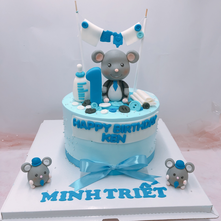 Bánh thôi nôi bé trai tuổi chuột. Bánh sinh nhật tuổi chuột, tuổi gắn liền với nhiều nhận vật hoạt hình ngộ nghĩnh đáng yêu như chuột Jerry, Mickey, Minnie..v..v, mời các bạn tham khảo mẫu bánh của.