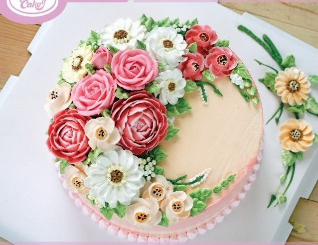 Bánh kem bơ Hàn Quốc, Bánh kem trang trí Hoa hồng theo phong cách Hàn Quốc với nhiều mầu sắc đẹp, tươi trẻ, bắt mắt, cực kỳ độc đáo và đầy tính nghệ thuật, …bắt mắt. Trong …