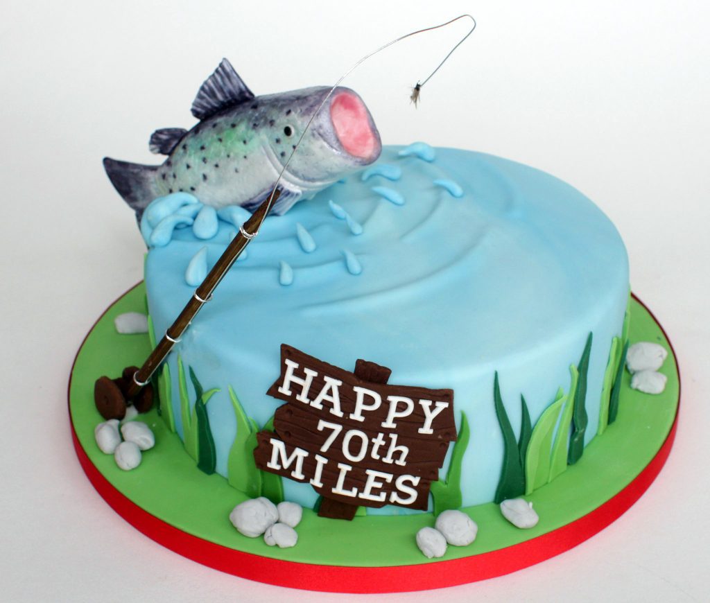 Bánh kem người đàn ông ngồi câu cá thư giãn mừng sinh …