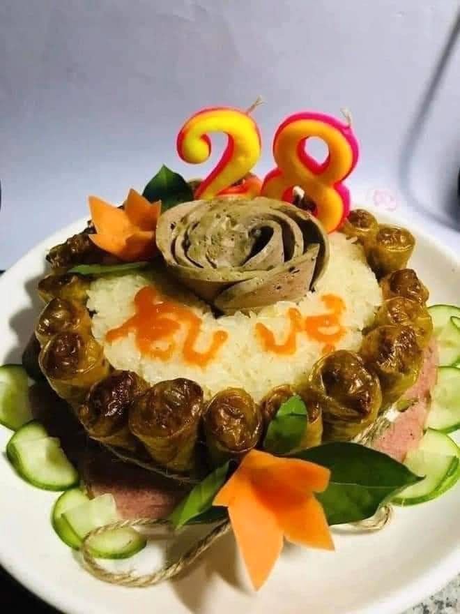 Bánh sinh nhật tự làm từ cơm, sushi, chả giò thậm chí là mì gói khiến cả người nhận và người tặng đều hạnh phúc mùa.