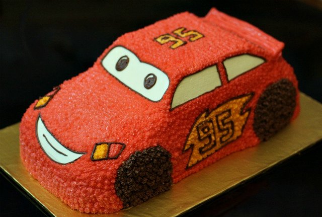 Ô tô bánh kem. Nếu các bé gái thường yêu thích công chúa, búp bê… thì bé trai luôn say mê với những mô hình ô tô trên TV, trong sách truyện hoặc được trưng bày trong các cửa hàng. Không chỉ vậy, hầu như bé nào cũng sở hữu cho mình một hay nhiều chiếc xe đồ chơi với đủ kiểu dáng, màu sắc bắt mắt. Phim hoạt hình Cars – Vương Quốc Xe Hơi cùng nhân vật Lightning McQueen chắc hẳn đã rất quen thuộc với các bé trai.
